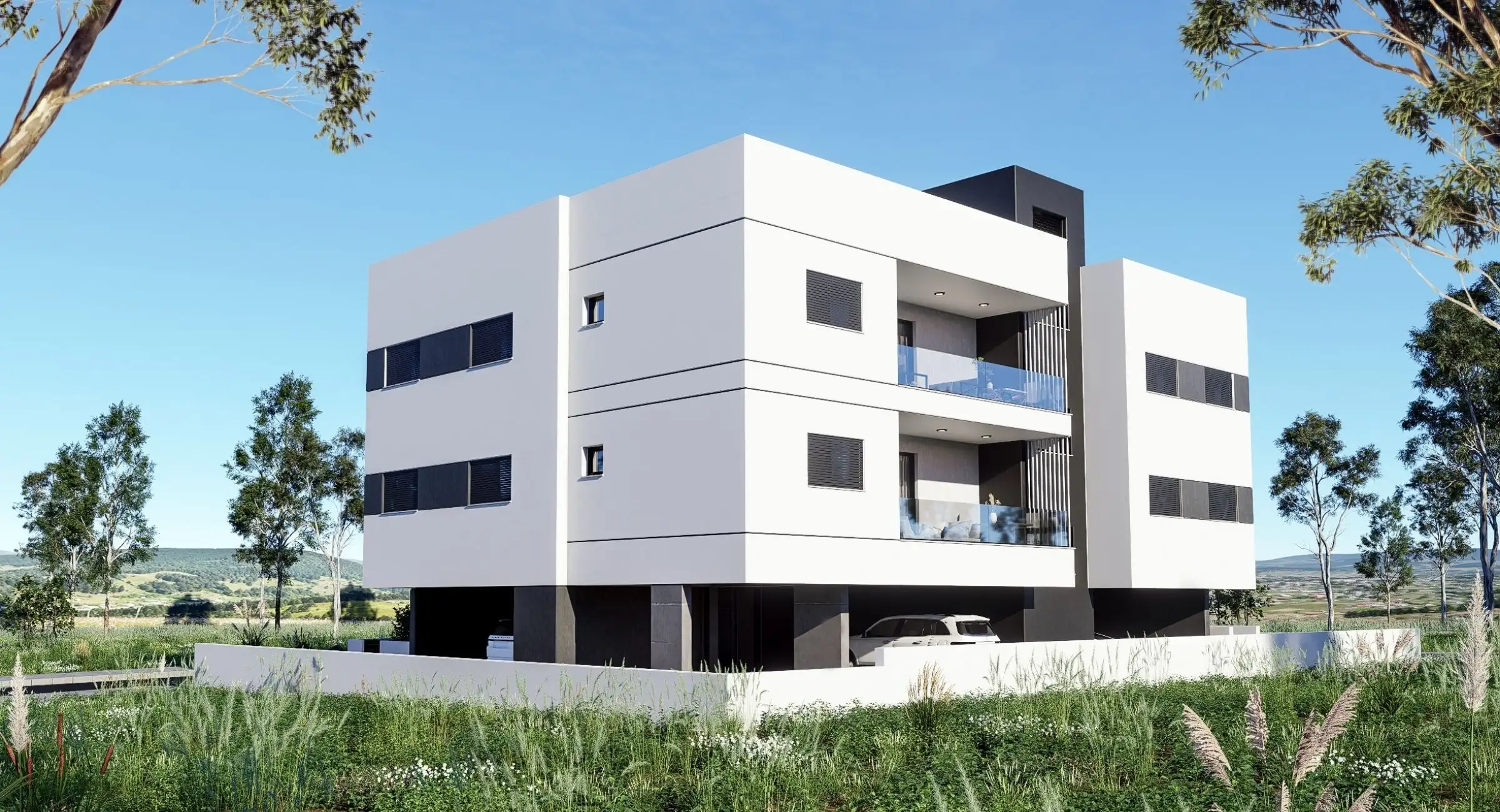 Το κάθε διαμέρισμα διαθέτει 1 αποθήκη και 1 χώρο στάθμευσης.